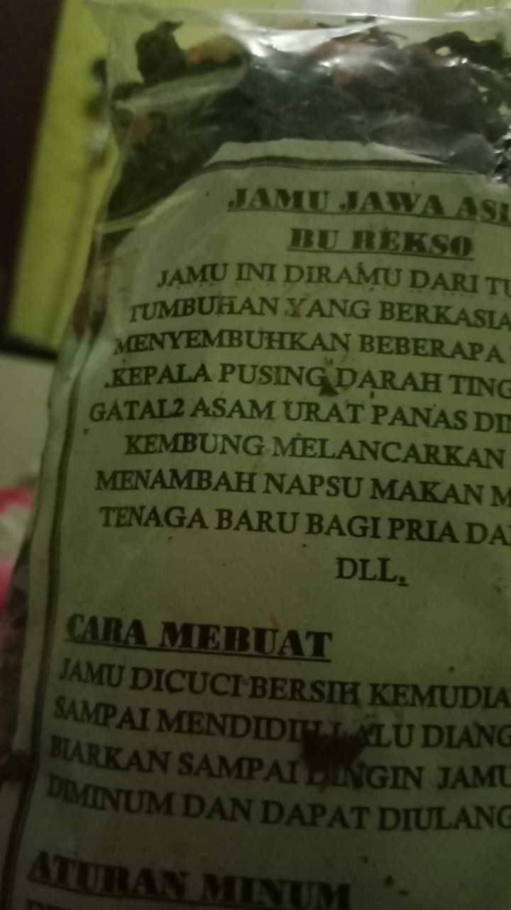 Wa 08179556329 jual jamu godog, toko jamu, jamu godg, jamu godok ,jamu godog ,jus mengkudu ,jamu kuat tradisional ,jamu bersalin ,jamu tradisional ,jamu tradisional kuat lelaki ,jamu godog sehat kuat thee ,noni jus ,jamu madura ,jamu godog sehat kuat ,jamu asam urat ,lulur pengantin ,jamu godog cap timbangan ,jamu awet muda ,cara membuat jus ,jamu herbal ,resep jamu kuat lelaki ,cara membuat. Pembuatan jamu agar menghasilkan jamu yang memenuhi persyaratan keamanan, mutu dan manfaat. Jamu stroke racikan herbal wasiilah 100 % alami. Hal ini karena wadah tersebut mengakibatkan ramuan jamu terkontaminasi zat iron. Meskipun rasanya sangatlah pahit akan tetepi bisa menghangatkan tubuh dan menguatkan stamina anda. Jamu dalam kemasan sachet atau jamu godokan? Setelah jamu mendidih, angkat dari kompor dan tunggu sampai dingin. Jamu resep jamu tradisional cara membuat jamu kering cara membuat jamu · jamu godog serbaguna. Salah satu jamu andalan mereka adalah jamu godog yang antara lain terdiri dari bidara laut, secang, temulawak, dan daun sambiloto. Tutorial membuat jamu godog ala mbah sri, jamu godok ini tidak pahit seperti pada umumnya jamu godok yang di jual di pasaran. Jamu godok rebus godog komplit herbal tradisional ampuh shopee indonesia. Membuat jamu merupakan salah satu profesi yang jumlahnya masih cukup banyak. 1 pak jamu godog sehat kuat buat 1 kali masak dicampur dengan 5 gelas air, direbus hingga jadi 3 gelas.